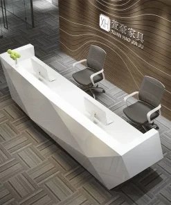 Quầy lễ tân showroom: Cần mặt quầy rộng để trưng bày sản phẩm mini hoặc brochure.