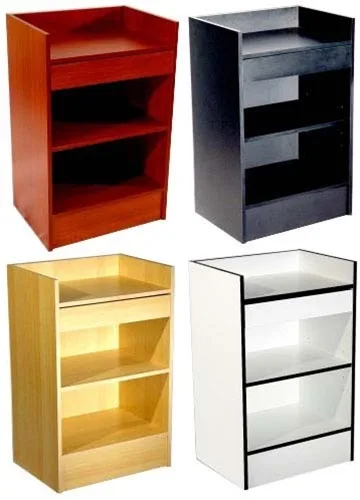 Kệ quầy thu ngân hiện đại ngày nay được làm từ nhiều loại vật liệu khác nhau, tùy thuộc vào nhu cầu và ngân sách: