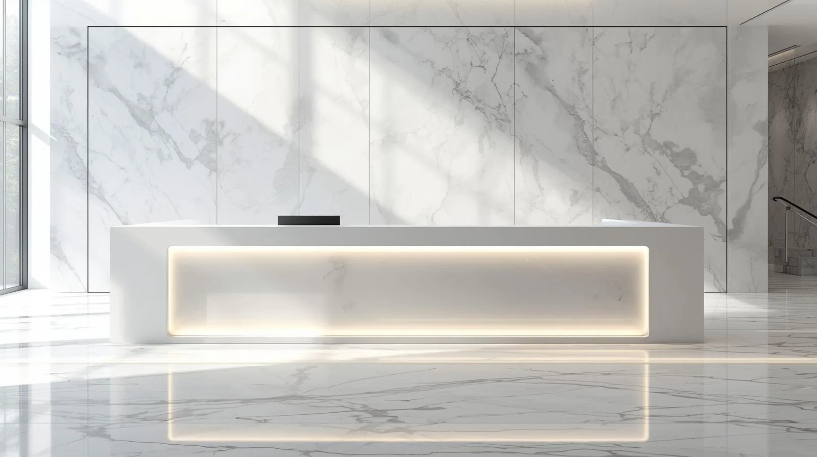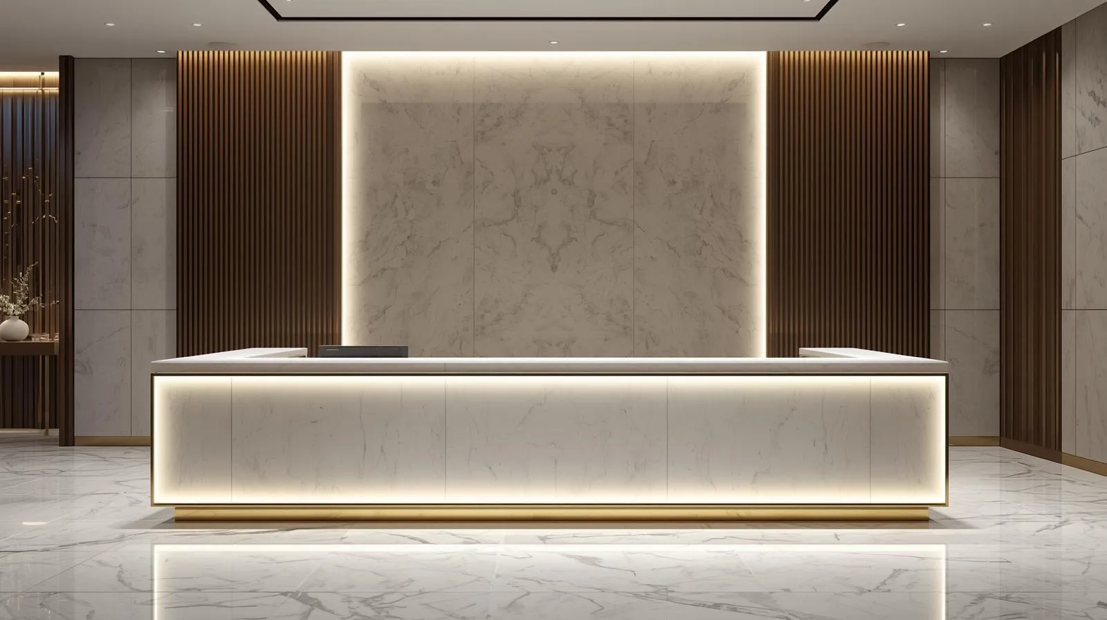 Tăng tính thẩm mỹ: Khi kết hợp cùng ánh sáng, vật liệu gỗ hoặc đá nhân tạo, quầy lễ tân chữ L trở nên vô cùng tinh tế và sang trọng.