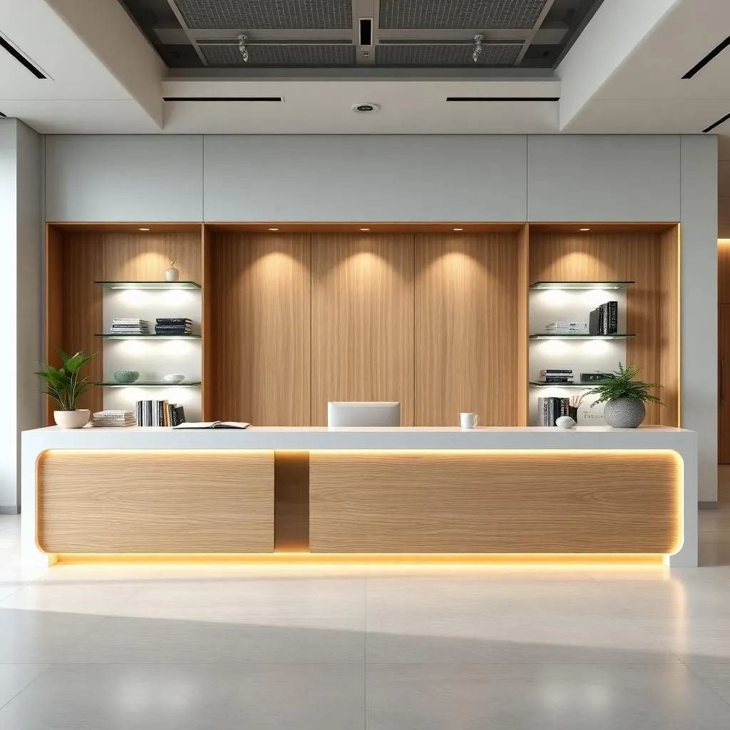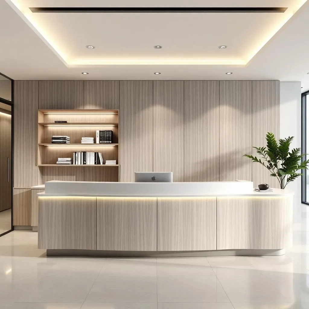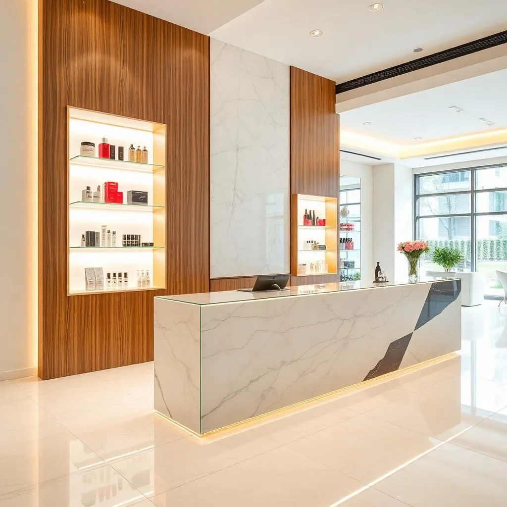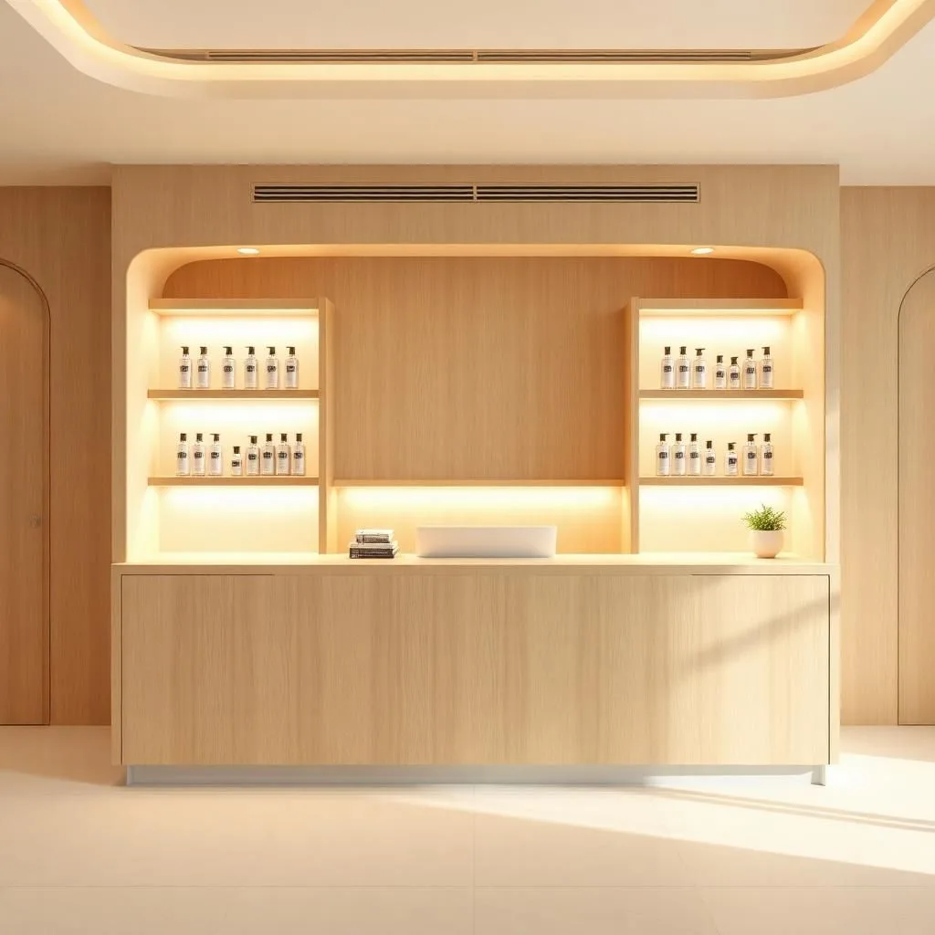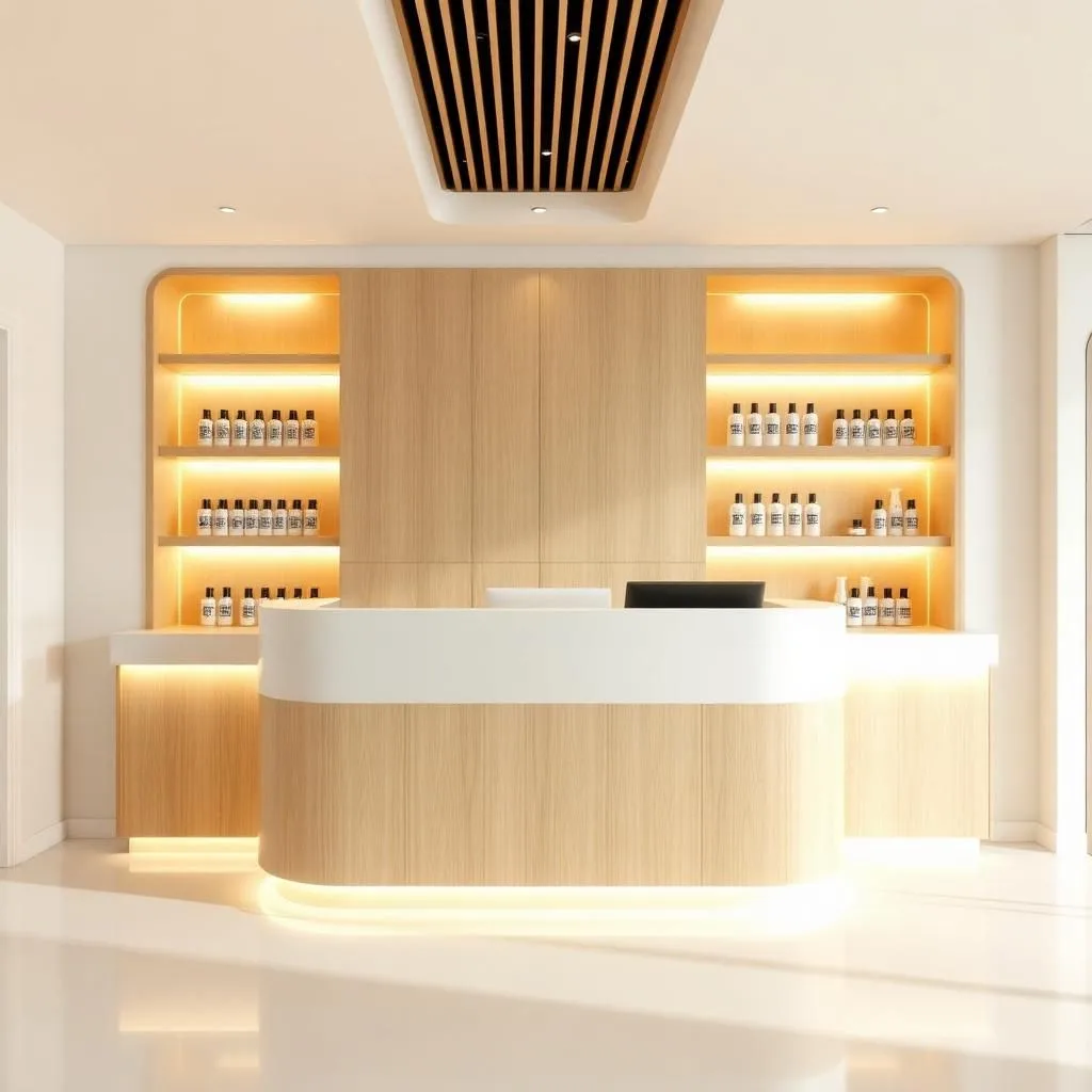 Quầy lễ tân có kệ trưng bày đang trở thành lựa chọn hàng đầu trong thiết kế nội thất spa, showroom, văn phòng và cửa hàng hiện đại. Không chỉ đảm nhiệm chức năng tiếp đón khách, mẫu quầy này còn giúp trưng bày sản phẩm, vật phẩm trang trí, brochure hay mỹ phẩm, tạo nên không gian chuyên nghiệp và thu hút ngay từ ánh nhìn đầu tiên. Với kiểu dáng đa dạng – từ quầy chữ I, chữ L đến quầy mini nhỏ gọn – mỗi thiết kế đều tối ưu diện tích, mang lại vẻ đẹp tinh tế và tiện nghi.