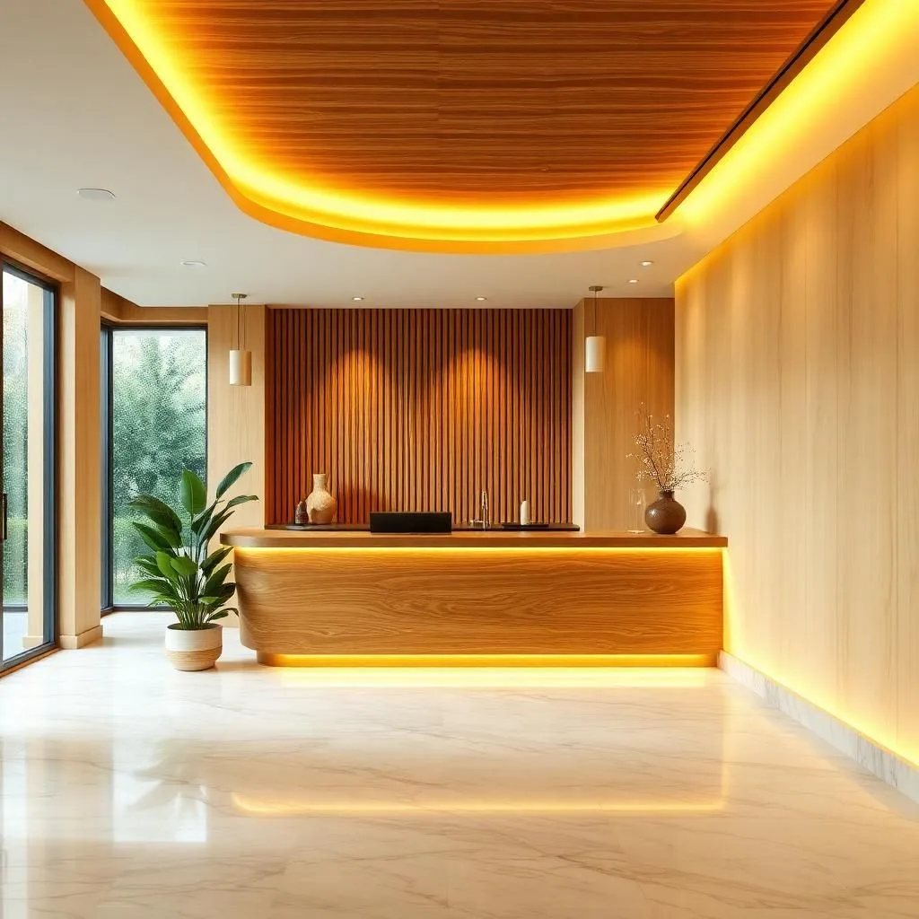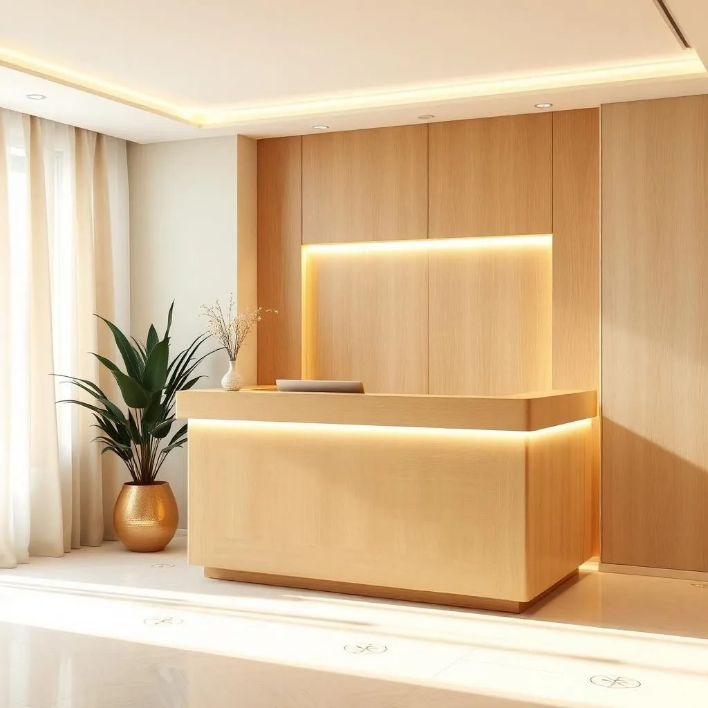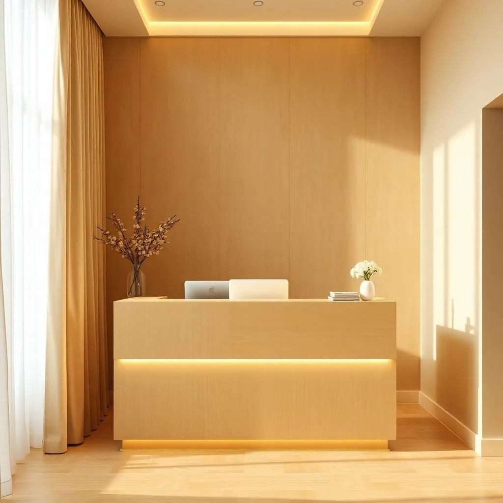 1. Giới thiệu về quầy lễ tân tone gỗ ấm Trong thiết kế nội thất hiện đại, quầy lễ tân tone gỗ ấm đang trở thành lựa chọn hàng đầu cho các spa, khách sạn, văn phòng hay showroom cao cấp. Màu gỗ tự nhiên không chỉ mang lại cảm giác sang trọng mà còn tạo nên bầu không khí gần gũi, thân thiện và ấm áp cho không gian đón tiếp khách hàng. Tone gỗ ấm thường bao gồm