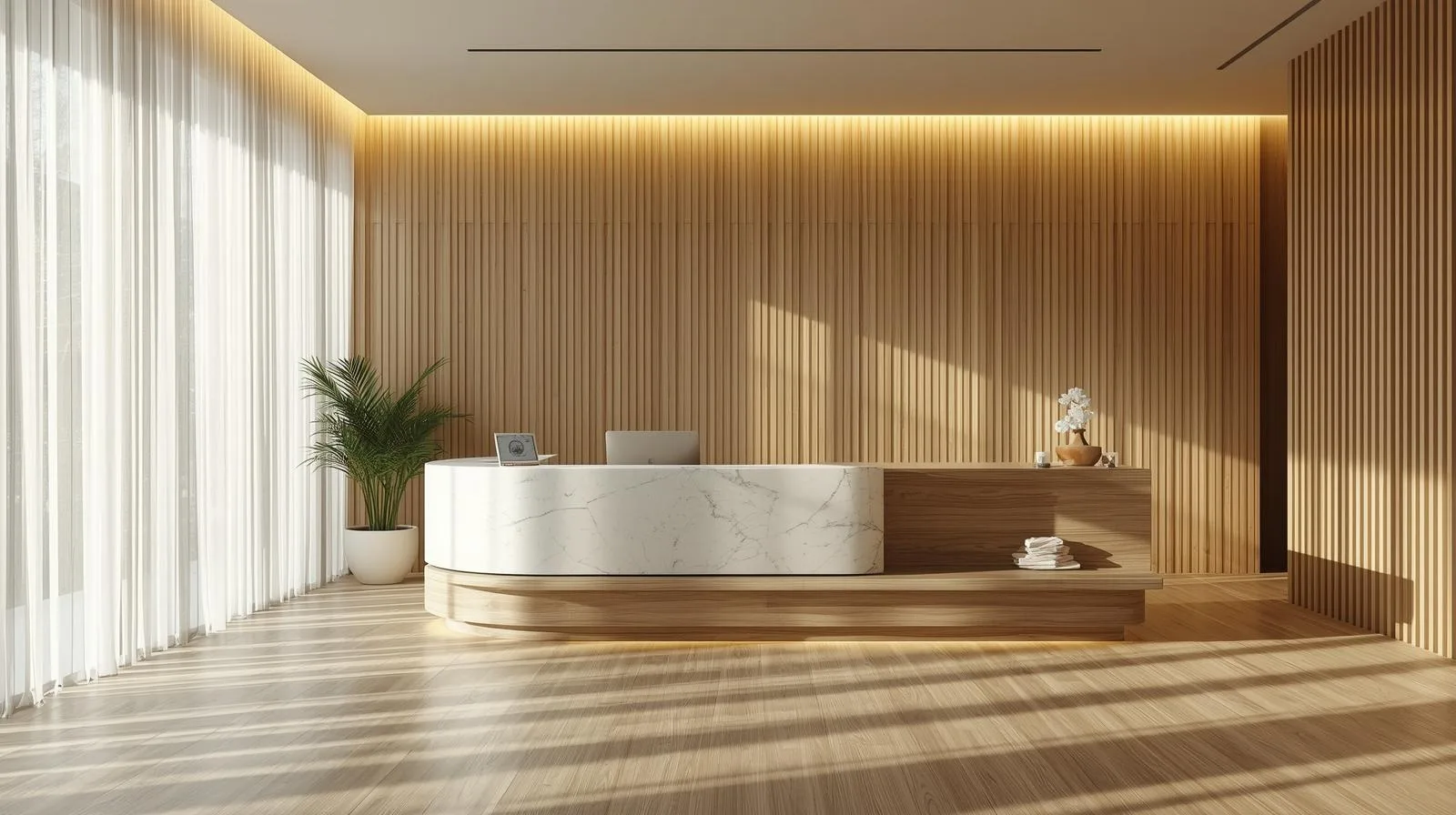 15. Kết luận – Nâng tầm không gian đón tiếp với quầy lễ tân tone trắng nâu tự nhiên