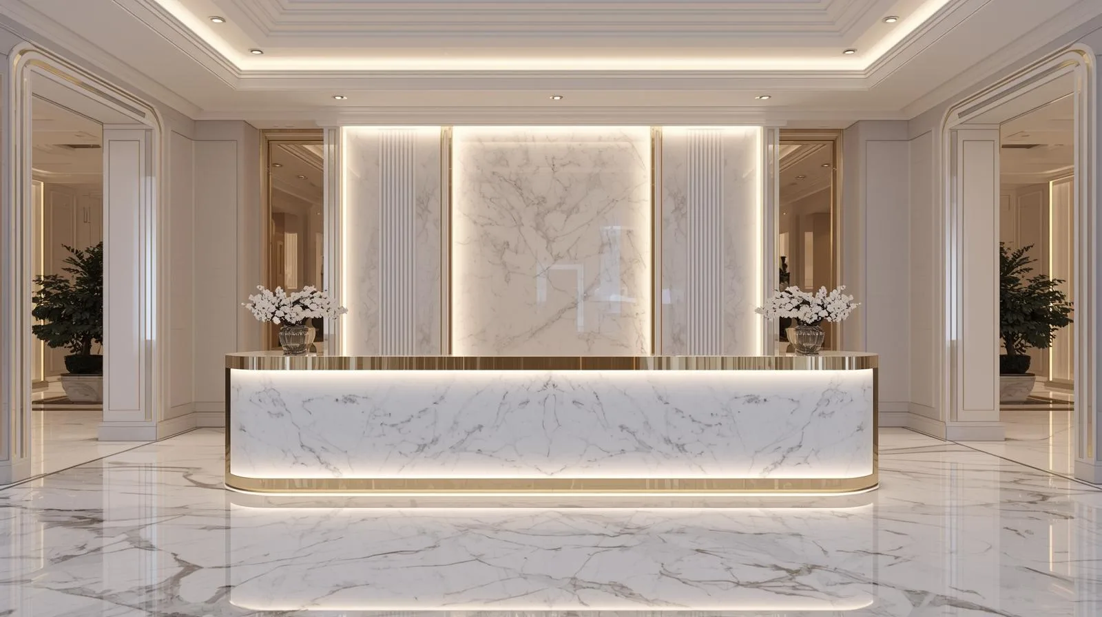 Quầy lễ tân tone trắng sang trọng