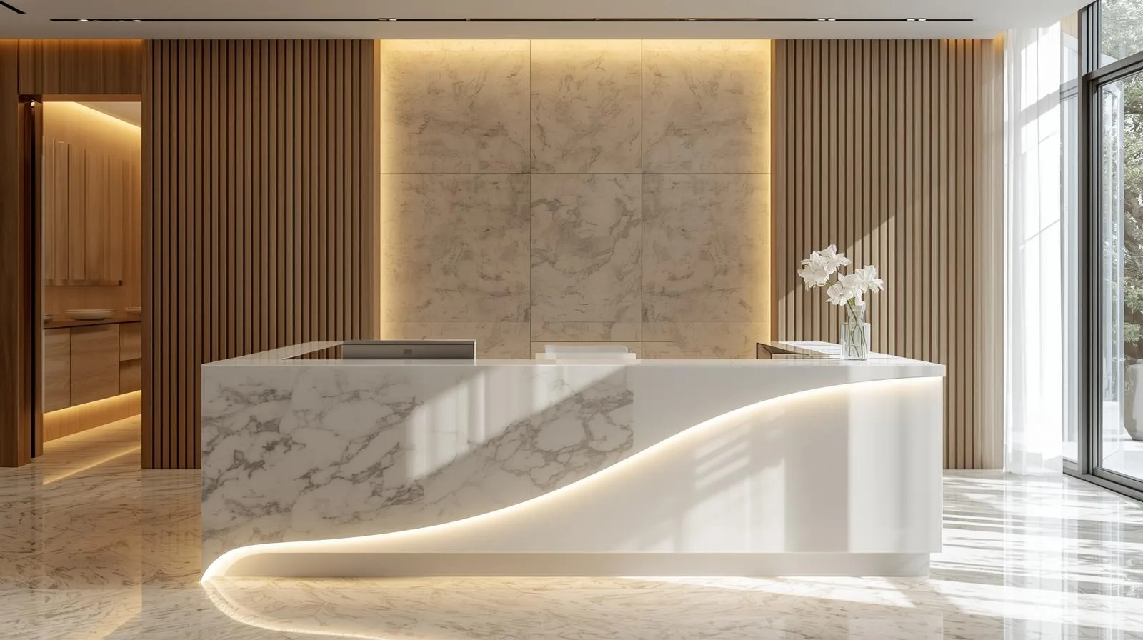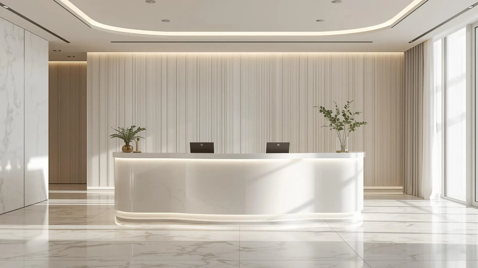 Quầy lễ tân tone trắng sang trọng đang là xu hướng thiết kế nổi bật năm 2025, mang đến vẻ đẹp tinh tế, hiện đại và đẳng cấp cho mọi không gian. Tone trắng không chỉ tạo cảm giác rộng rãi, sạch sẽ mà còn thể hiện sự chuyên nghiệp, thanh lịch – rất phù hợp cho spa, thẩm mỹ viện, showroom hay văn phòng công ty.