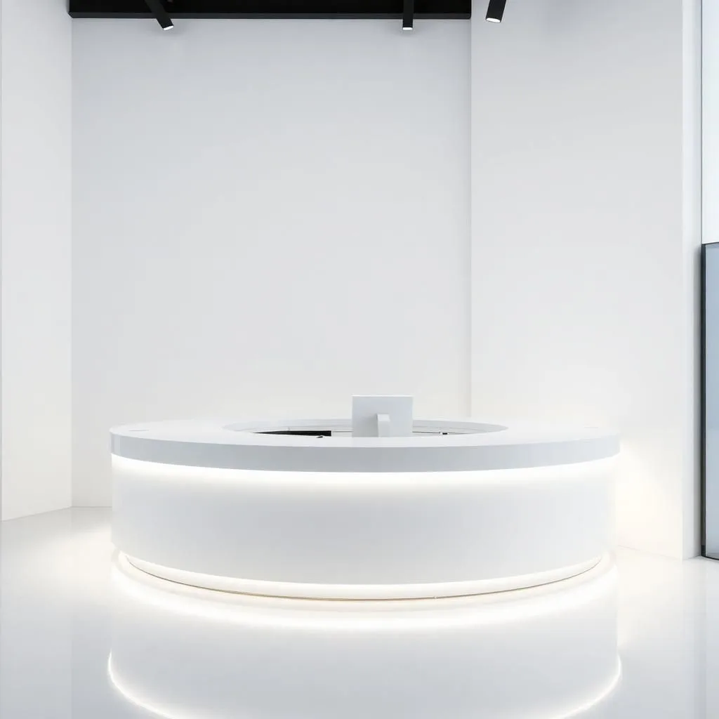 Thường bố trí đèn LED hắt sáng, kệ tủ dưới mặt đá để cất hồ sơ hoặc sản phẩm mini.