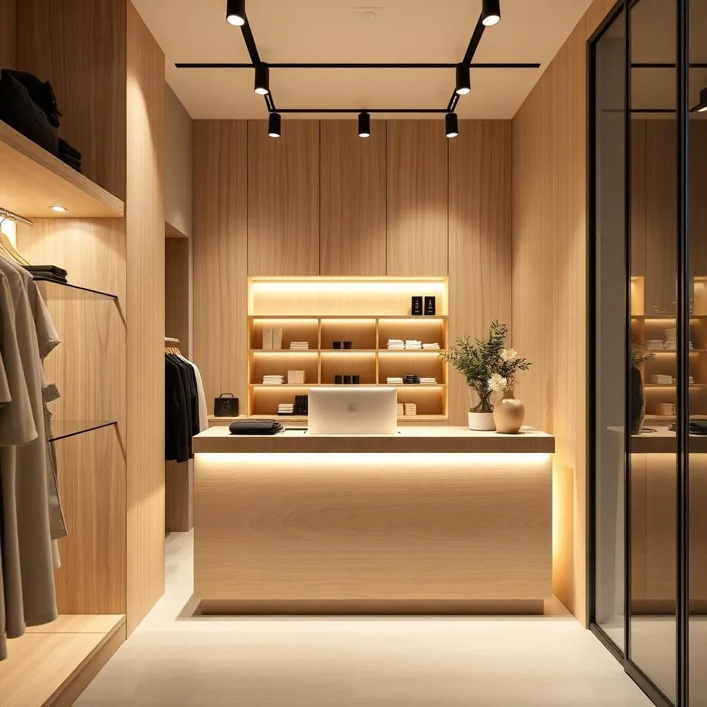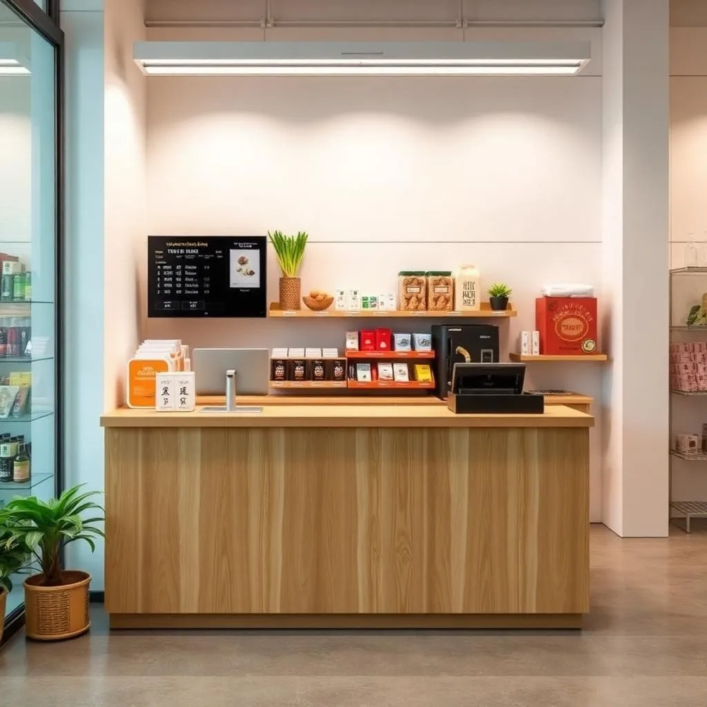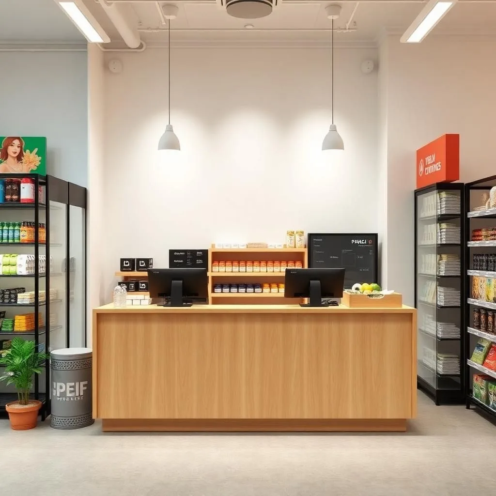 Khi thiết kế cửa hàng diện tích nhỏ, vị trí đặt quầy thu ngân đóng vai trò quan trọng để tối ưu không gian di chuyển và tầm nhìn khách hàng.