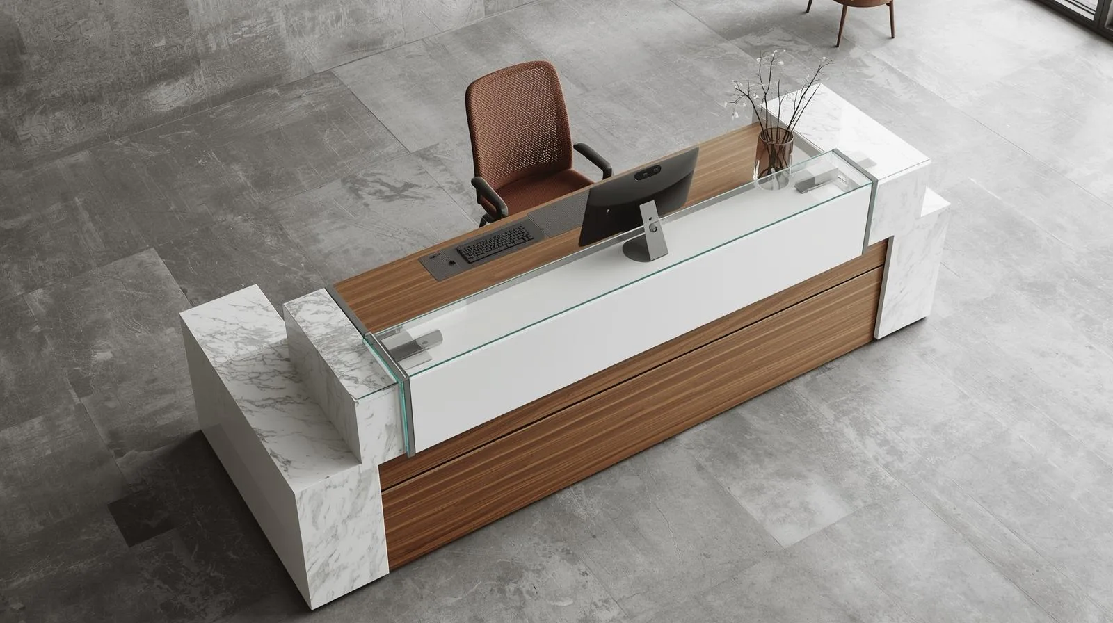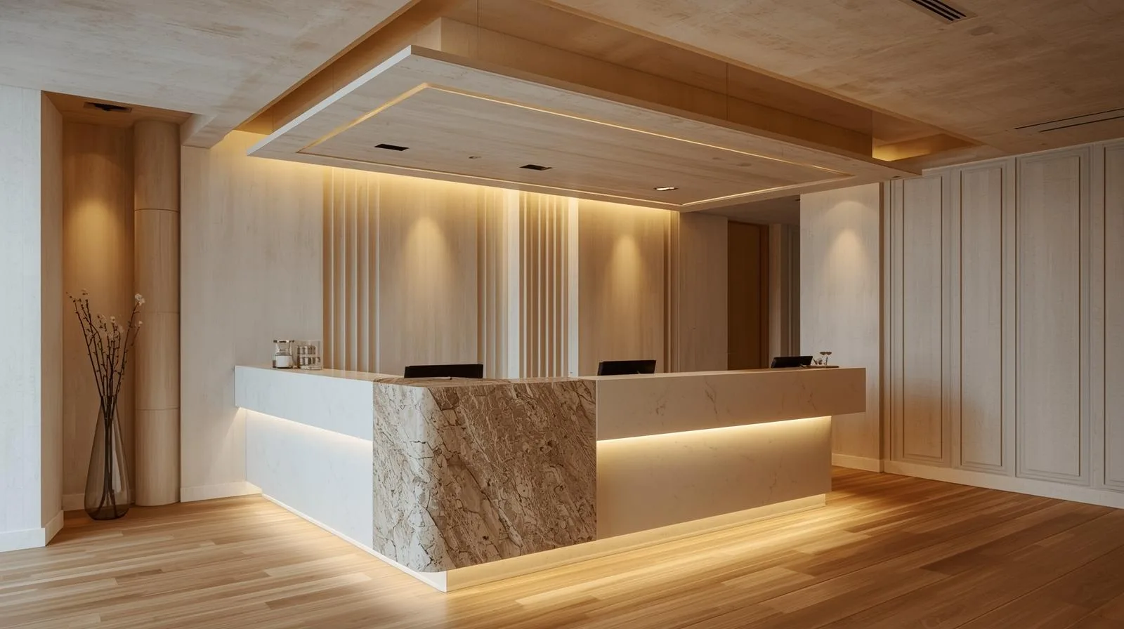 1. Tầm quan trọng của quầy lễ tân trong không gian thương hiệu Quầy lễ tân là nơi đầu tiên khách hàng tiếp xúc khi bước vào doanh nghiệp, spa, showroom hay khách sạn. Đây không chỉ là khu vực chào đón, mà còn là bộ mặt thương hiệu, thể hiện phong cách và đẳng cấp của đơn vị. Một quầy lễ tân được thi công chuyên nghiệp, hài hòa về thiết kế, chất liệu và màu sắc sẽ góp